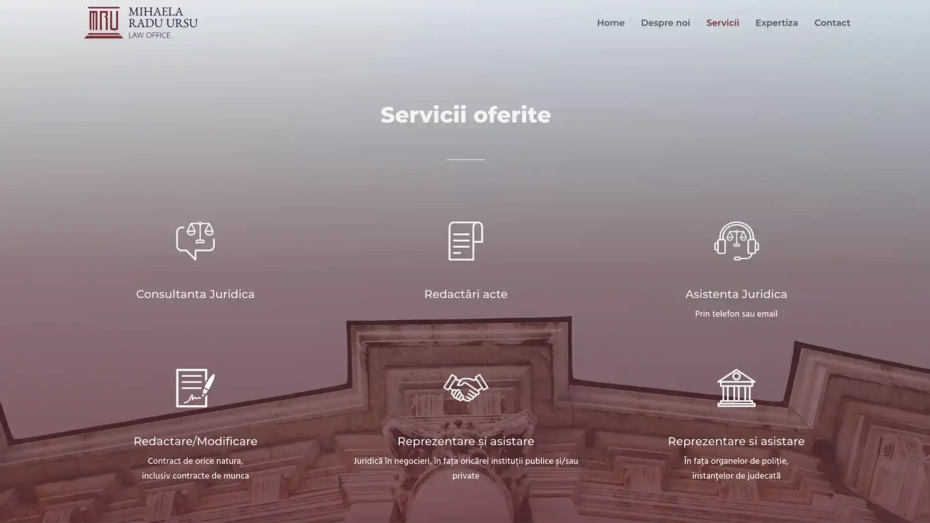 Toata platforma a fost dezvoltată de la 0, pentru MRU Law.